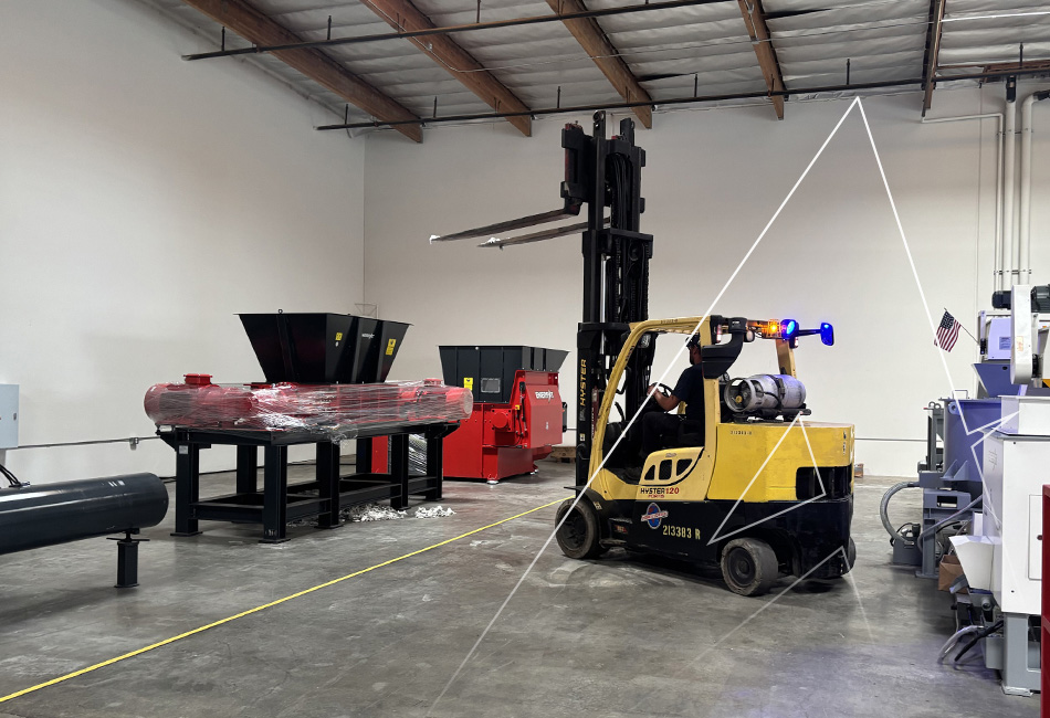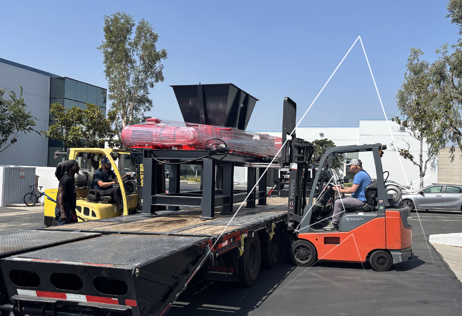 原料は二軸シュレッダーの破砕室へ搬送されます。