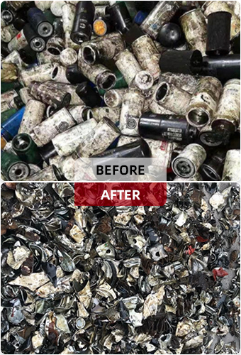 オイルフィルターをあらかじめ細断しておきます。この装置は大きなせん断力を備え、あらゆる種類の硬くて延性のある廃棄物を処理できます。吐出量を制御するスクリーンが装備されています。